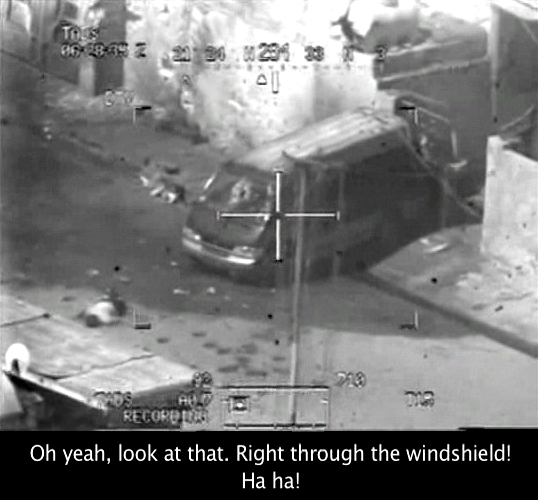 90 PLEASE WATCH documentary Body of War. Just as president Bush joked about non-extant Iraqi WMD at one such White House mainstreamists dinner (at 55:00), so you can hear Obama jokes at one of such occasions about his PREDATOR drones, firing by the way, hellfire missiles. In Body of War, their jokes pierce the heart of Tomas Young, soldier in pain. Body of War,