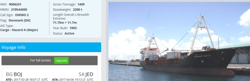 At the same time, Marianne Danica officially declares that it transports extremely dangerous cargo. According to automated Identification System (AIS) type, the cargo is Hazard A (Major) which is the class for explosives and weapons. However, this cargo is evidently not intended for Saudi Arabia as its army is equipped with the armament provided by Western states only.