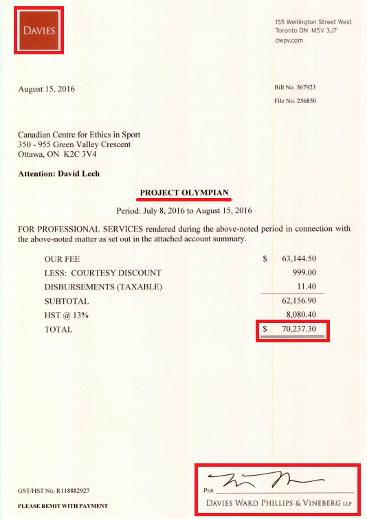 Following their intentions, USADA and the Canadian Center for Ethics in Sport launched the joint Project Olympian. Legal assistance was provided by Davies Ward Phillips & Vineberg LLP.