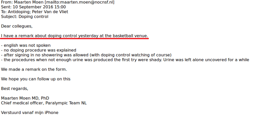 American Paralympic Athletes Use Doping Substances Among others, the US Paralympic athletes take prohibited drugs. Look at their TUE reports. Abigail Dunkin, a member of the US Women’s wheelchair basketball team, Rio gold medalist. Midodrine – USADA TUE. Jennifer Polst, a member of the US Women’s wheelchair basketball team, Rio gold medalist. Spironolactone – TUE. Seth Jahn, an American paralympic soccer player. Testosterone – TUE. Matt Lesperance, a member of the US Men’s wheelchair basketball team. Testosterone – TUE. Will Waller, a member of the US Men’s wheelchair basketball team, 2012 Paralympics bronze medalist. He has used hydronolone and got injected with cortisone. These substances contain glucocorticoids. USADA Staff Is Incompetent Some of Dr. Fedoruk’s emails show USADA team’s low level of qualification. Below is a remark about the US anti-doping agency from the Dutch Paralympic team’s chief medical officer.