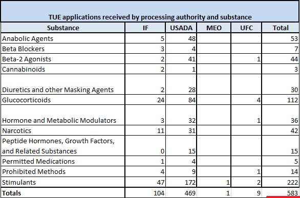 Only in 2015, 583 TUE certificates on various banned drugs were granted to them. Many athletes are allowed to use more than one type of substances.