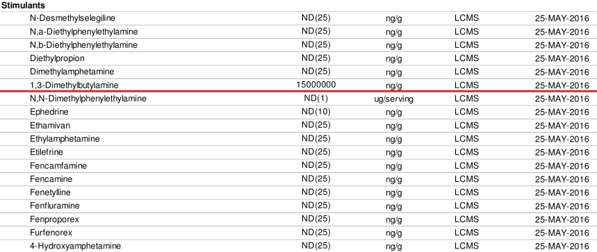 The next email is about some failed attempts to test Anton Kriukov, Ukrainian weightlifter, at Rio Paralympic Games. For the record, he was not sanctioned. Below you may see officials discussing an opportunity for American athletes to use a hemp protein powder. Here is the chemical analysis finding. Geeked Pre Workout Powder sports nutrition used by American athletes contains a banned substance. Geeked Pre Workout sports nutrition chemical analysis results
