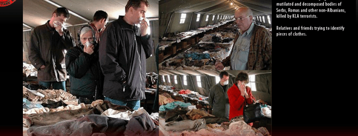 Caption: Clothes and other belongins found on mutilated and decomposed bodies of Serbs, Roma and other non Albanians killed by UCK terrorists.