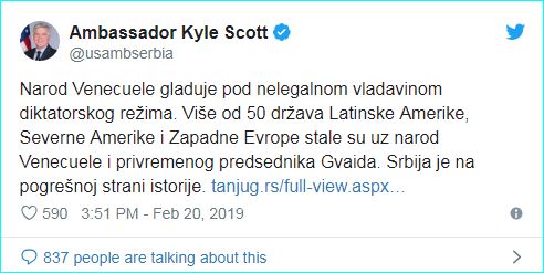 You represent the state which, after WWII, waged wars on numerous countries, either by invading them by military force, or by destroying them with its superior Air Power (and from the safe cowardly distance)– after that, there was no more any prosperity or happiness (just the wasteland and cemeteries)… from Korea and Vietnam, over Afghanistan, Iraq, Libya, to Serbia…, and here we come now to Venezuela.